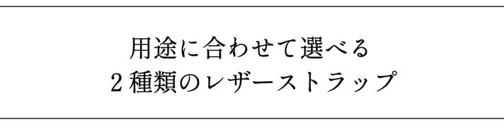 ②ロングストラップ付き:ショートストラップ(35cm)に加え、オプションのロングストラップ(首にかけられる長さ/80cm)付き
