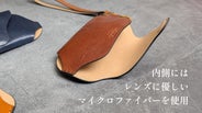 内側には、レンズを傷つけにくいマイクロファイバースエードを使用。