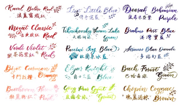 "Pierre Cardin City Fantasyのインクは単色での使用だけでなく、ミックスしての使用も刺激的です。ミックスする事によっ出来る、オリジナリティの高い独自の色をお楽しみください。