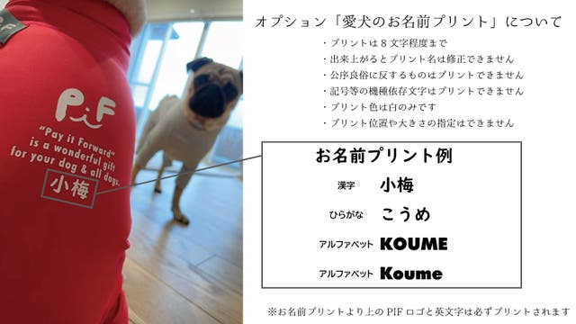 愛犬とお揃いのPIFロゴがプリントされたTシャツ