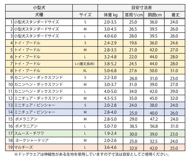 たしかに一部の犬種を除いて、一般的にドッグウエアは【小・中・大型犬でS・M・L】という具合に分けられて販売されていることが多いですよね。