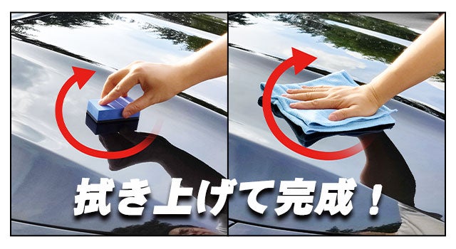③専用スポンジで円を描くように塗り広げながら施工し、付属の乾いた布で、再度円を描くように拭き上げます。