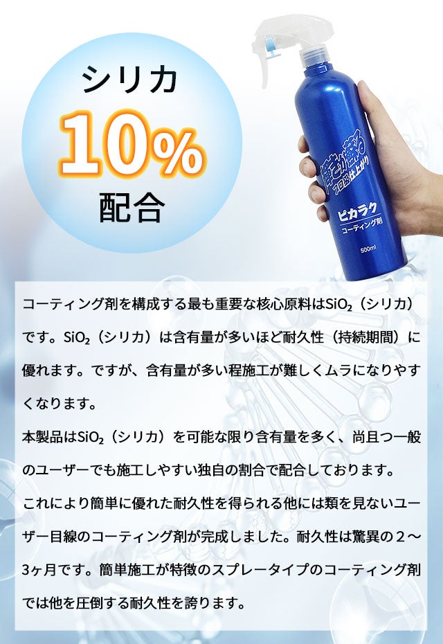 そんな願いをもっているお客様に用意したコーティング剤「ピカラク」です。