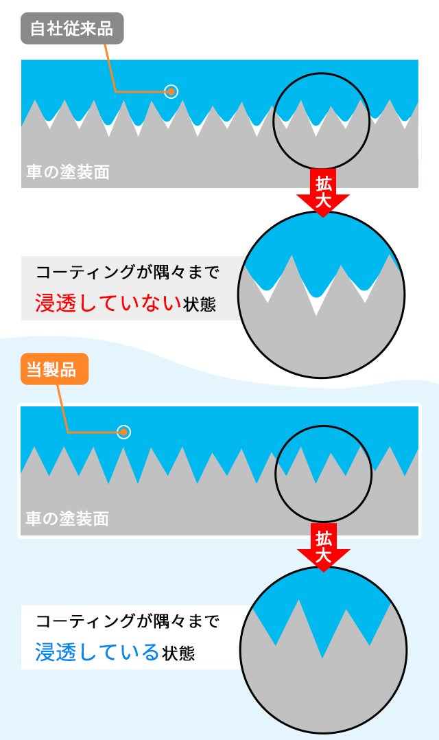 ※光沢感のアップと撥水性は自社試験確認をしたものです。