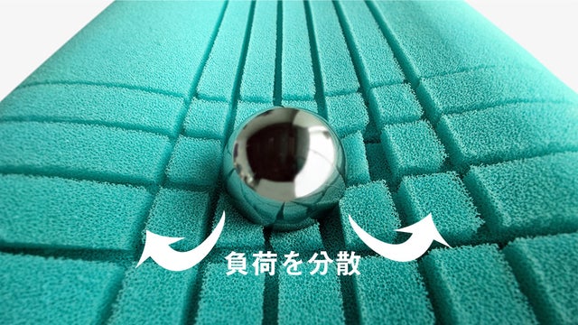スリット(切れ目)を格子状に入れることで、頭にかかる負荷を分散。