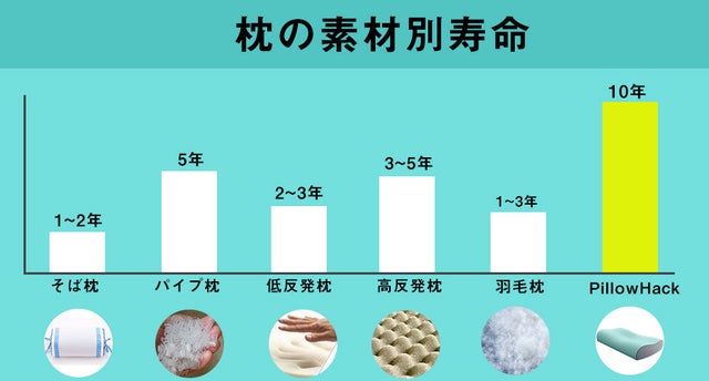 一般的な枕の寿命は3〜4年ほどですが、「PillowHack」の寿命は10年!