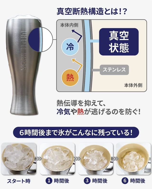 - 飲み頃を長くキープする!冷たさ・温かさをキープ!真空断熱二重構造!20時間後も氷が残っている!