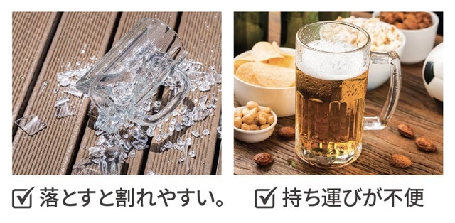 ガラスのジョッキで困ることと言えば、落としてしまうとすぐ割れてしまうことが挙げられます。