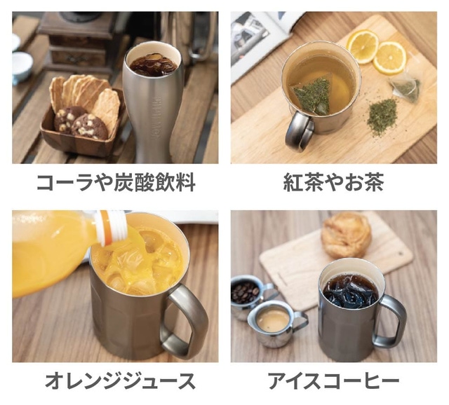 温かい飲み物は内側から外側へ熱が逃げるのを防ぎ、冷たい飲み物は外側の熱が内側へ伝わるのを防ぐため保冷保温効果が高く適温を長時間保ちます。
