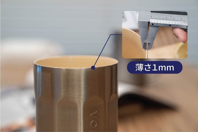 フィルモアのタンブラーの飲み口は約1mmでガラスのビールジョッキに匹敵するほど、極細です。