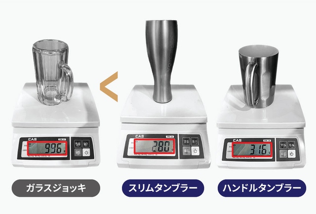 フィルモアのタンブラーは大容量の割にハンドルタンブラーが316g、スリムタンブラーは280gととても軽いです。