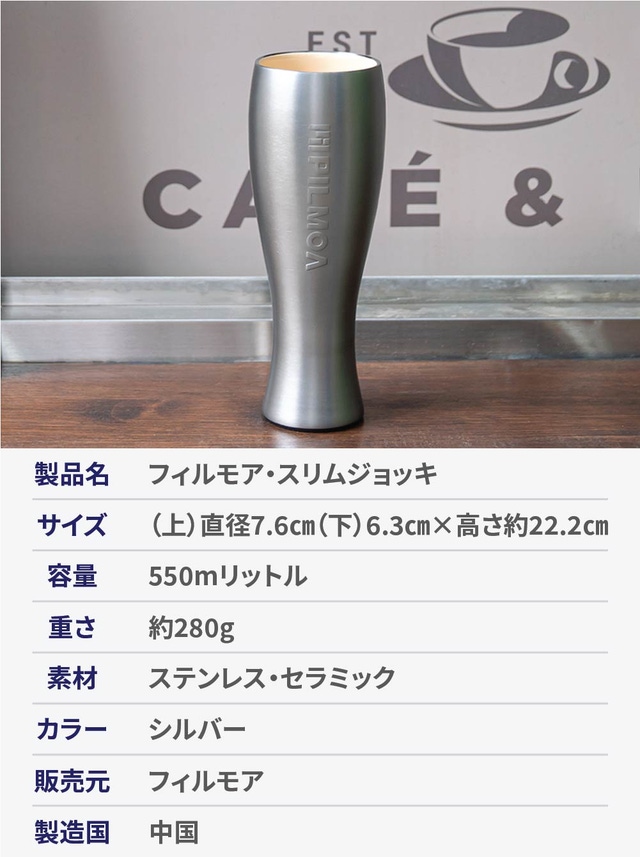 フィルモアのタンブラーは外側はステンレス、内側はセラミックコーティングを施し、口当たりの良いなめらかな飲み口を実現しました!
