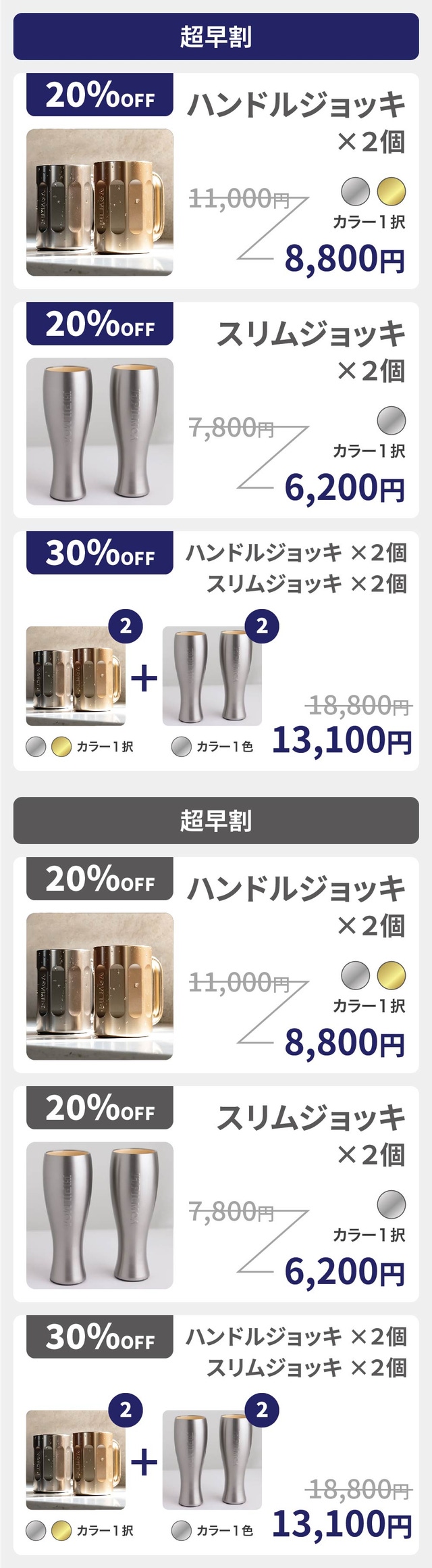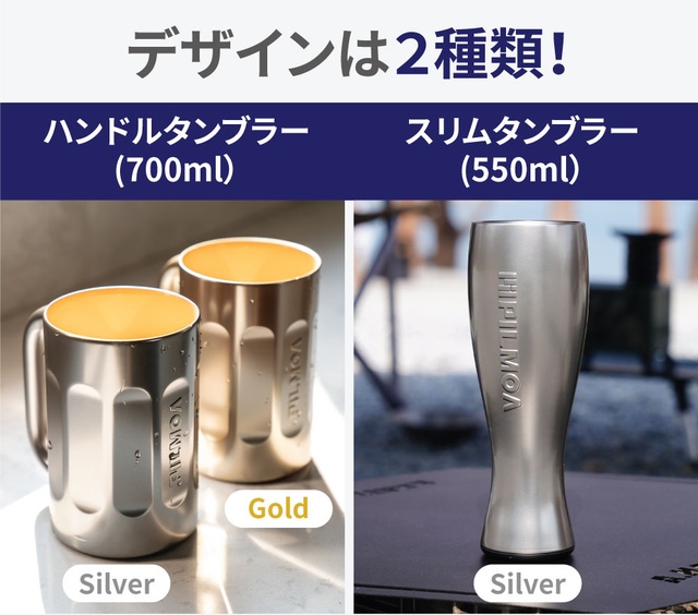 ※ハンドルタンブラーのカラーはシルバー・ゴールドがあり、スリムタンブラーはシルバー1色です。