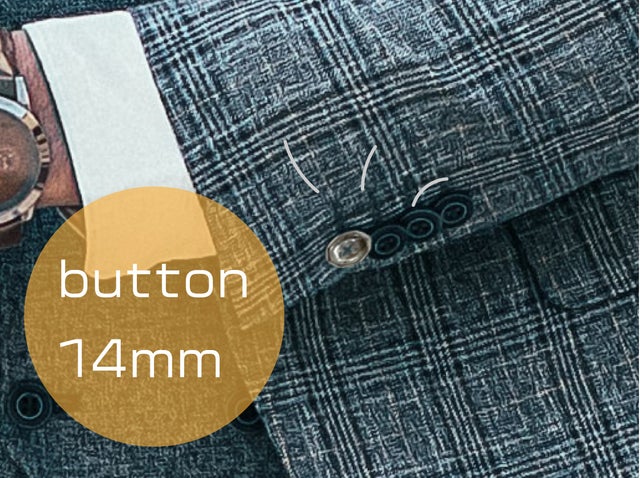 20mmはジャケットのフロントボタンに、14mmのボタンは袖口のボタンに取り替えてお使いいただけます。ボタンを1つ替えることで印象が格段と変わり、周りと差をつけます!是非ご体感ください。