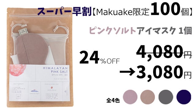 「Makuake(マクアケ)」は、実行者の想いを応援購入によって実現するアタラシイものやサービスのプラットフォームです。このページは、 プロダクトカテゴリの 「より深いところまで温かく。ヒマラヤピンクソルトを使用したアイマスク」プロジェクト詳細ページです。