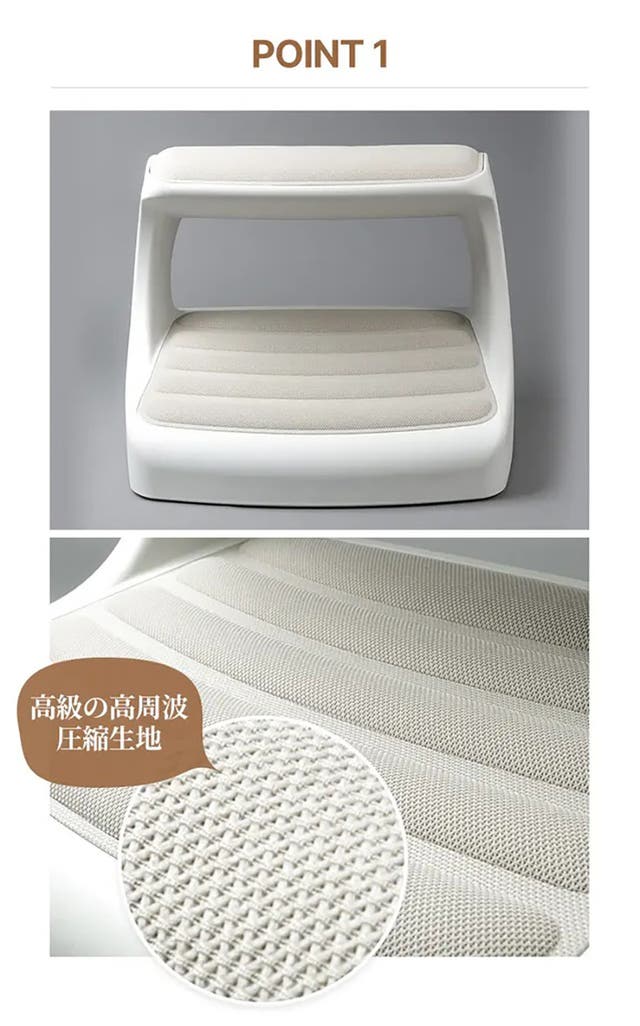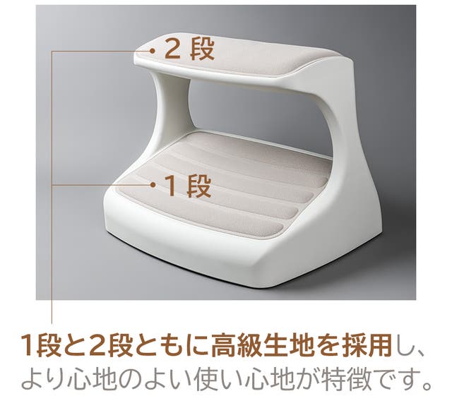 人間工学的な作りはもちろん、 2段式の足置き台で、もっと楽に !