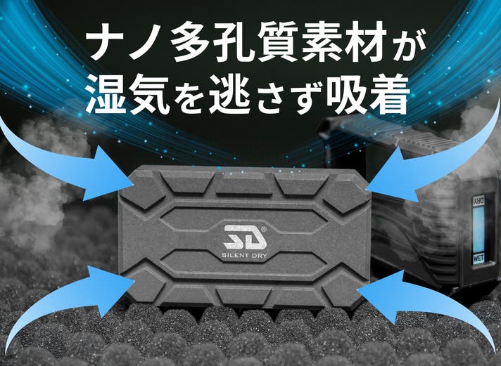 タンクも電源も不要で、どんな場所でも湿気対策が可能。