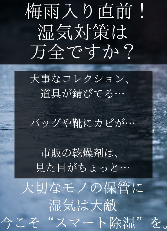 - 特許取得※(日本・米国・フランス・韓国)の除湿石!湿気から大切なアイテムを長期間守ります。