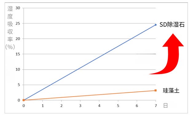 人気の高い珪藻土タイプと比較しても、吸湿力は圧倒的。
