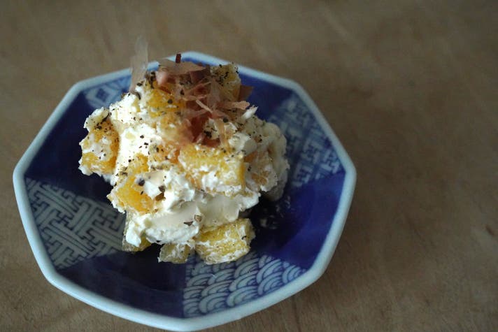 ▲クリームチーズとブラックペッパーが、数の子の触感と旨味を引き立てる