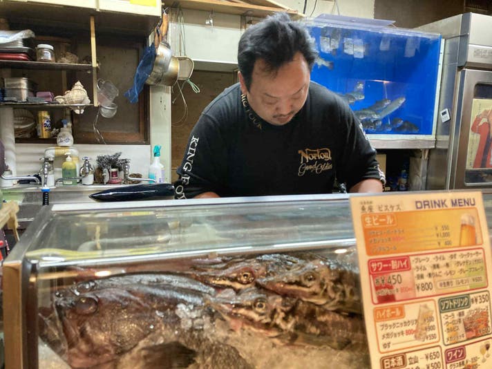 ▲いつもはひょうきんなマスターだが、魚をさばく姿は真剣そのもの