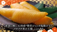 ▲獲れたてのニシンのお腹から取り出してすぐに加工。非冷凍、無漂白なので、宝石のような艶とプチップチの弾力感が味わえる逸品