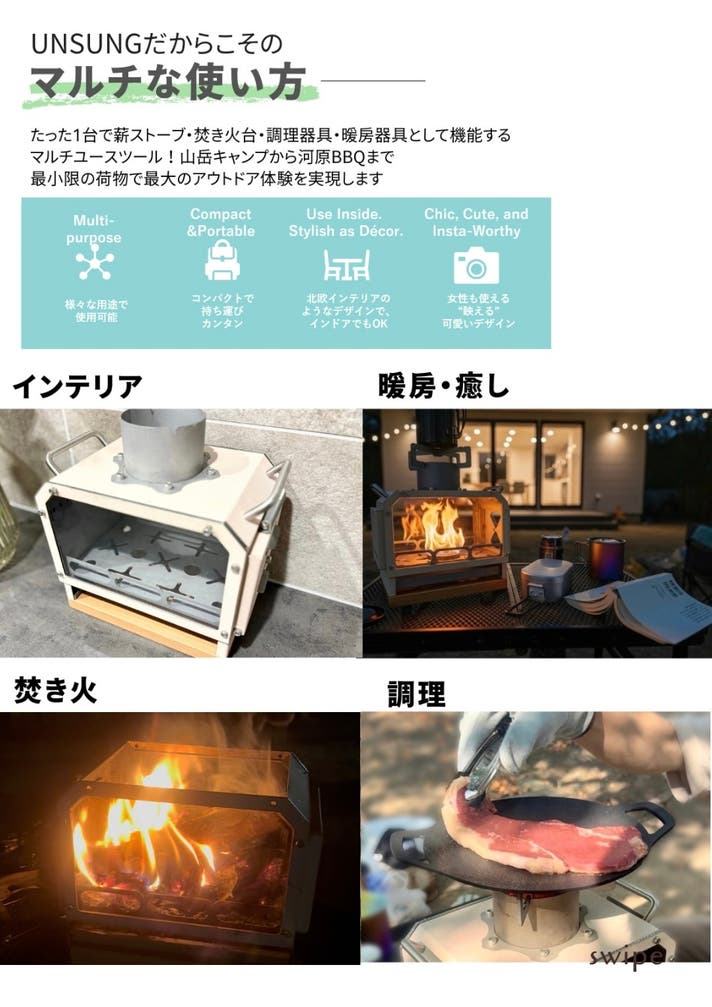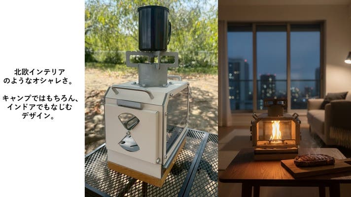 - デザイン性と機能性によって実現できるマルチユース。「焚き火」も「調理」も「癒し」もこの一台で。