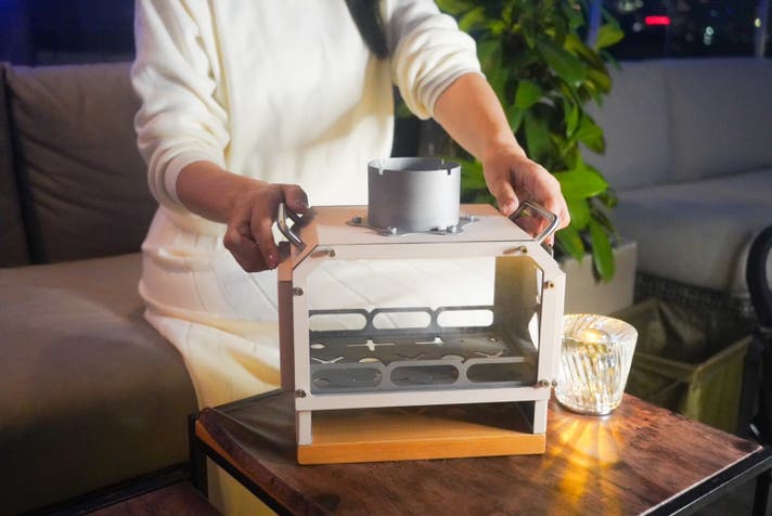 天板を外し、アルコールストーブと組み合わせることで、室内でも炎を楽しむことが可能です。