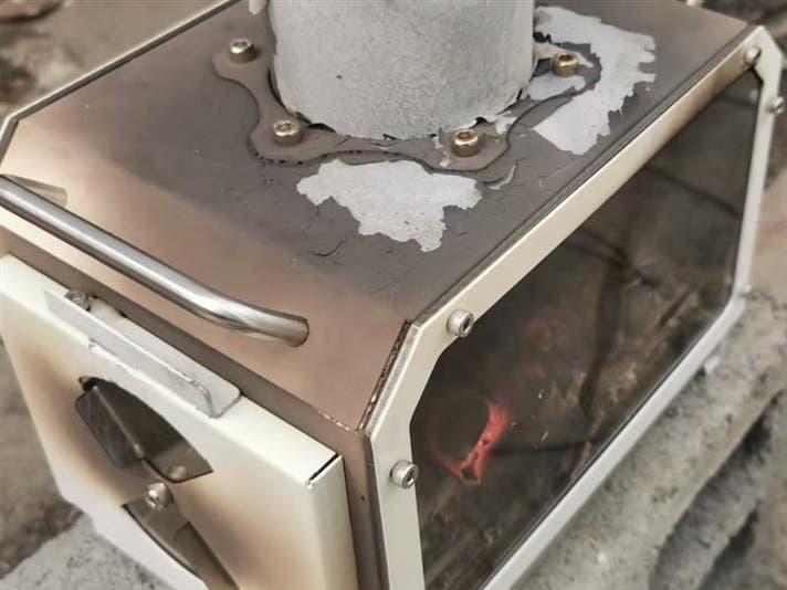 一方、『北欧風クリームミニ薪ストーブ』は半開放式のデザインを採用しており、焚き火台としても使用できるという特長があります。しかしその反面、炎が塗装面に直接触れるため、一般的な耐熱塗料では耐久性が不十分となる可能性があります。