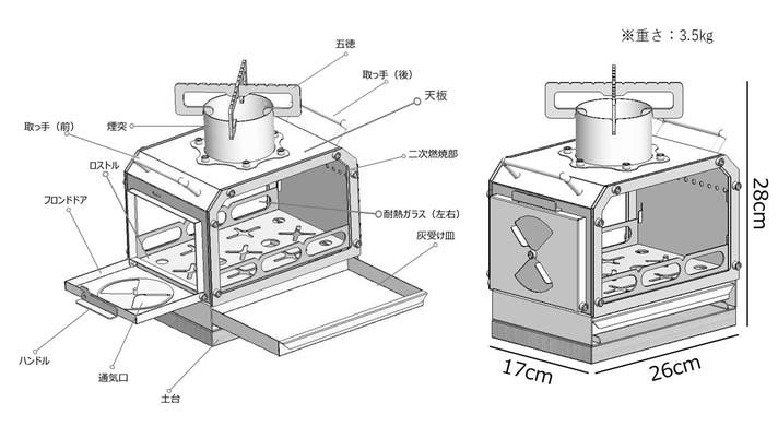 本製品は、薪や炭を使った屋外での使用を前提に設計されていますが、
