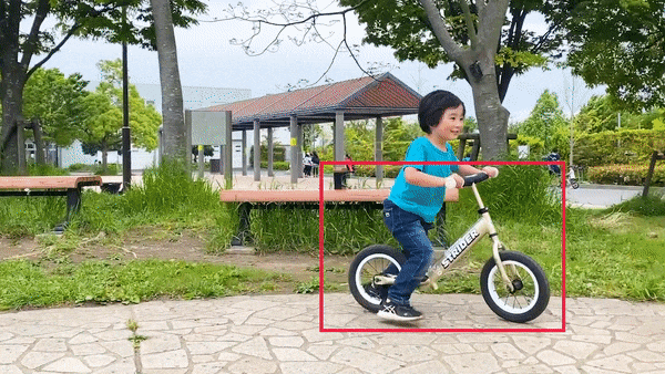子どもが自転車に乗っている様子も、この通り自動で追尾。お父さんやお母さんは撮影係から卒業です。