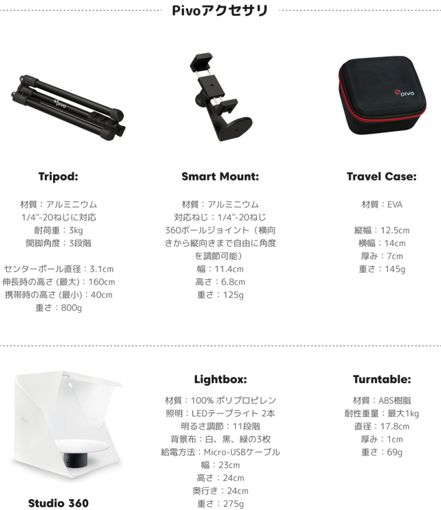 ・Pod Black本体1台+Smart Mount1個+Tripod1台+Studio 360 1個