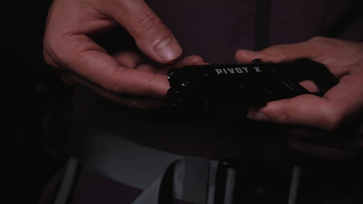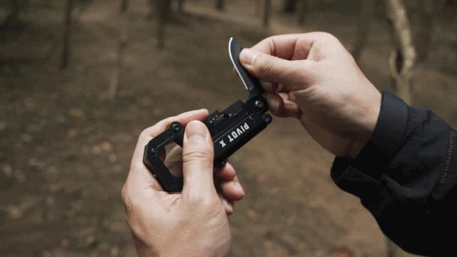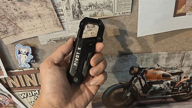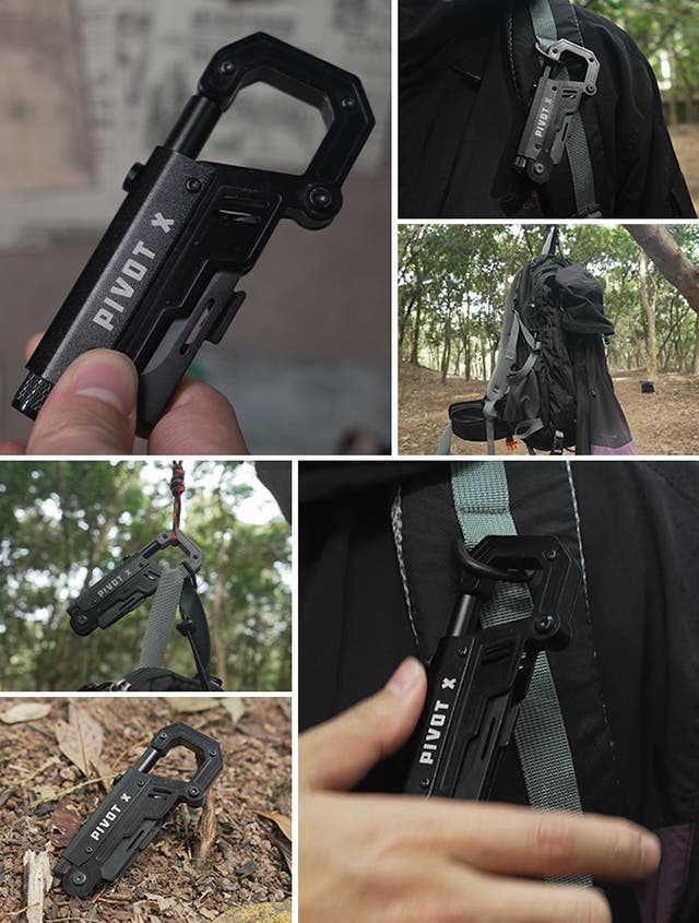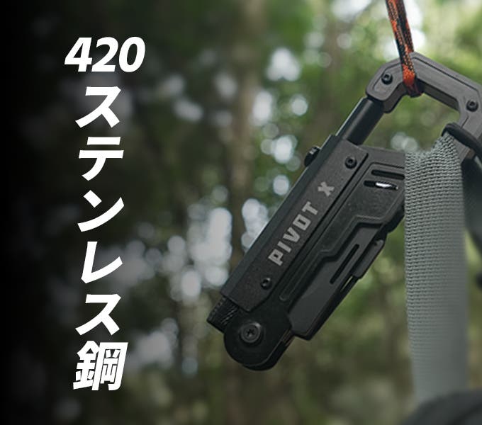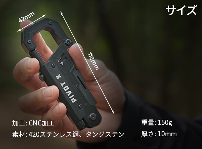 Pivot Xは、わずか11.8×4.2×1cm、重量約150gの超コンパクト設計。手になじみ、ポケットにすっきり収まります。さらに、本体がカラビナとして機能するため、ベルトやバッグに直接クリップ。アウトドアから日常まで、必要な工具が常に手の届く位置にあり、一瞬で取り出せます。