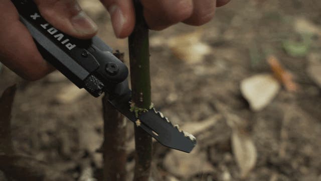 Pivot X内蔵の小型ノコギリは、コンパクトながら驚きの切れ味。両刃の鋭い歯が、小枝やロープ、釣り糸を繊維から捉え、軽い力でスパッと断ち切ります。焚き火準備、軽剪定、緊急時の脱出まで、さまざまな場面でその真価を発揮する、頼れる機能です。