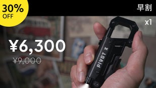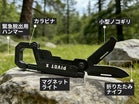 - カラビナの革新フォルムに、ナイフ・ノコギリ・ライトなど5機能を集約。いつでも手に取れる新常識。