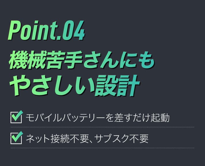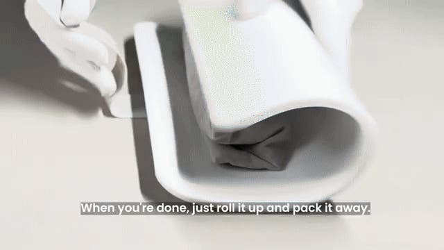 機械の操作が不安という方でも使いやすいよう、Pixplyはシンプルな設計になっています。Pixmat(Pixply本体マット)は電源ボタンがありません。パッと広げてモバイルバッテリーに差すだけ。