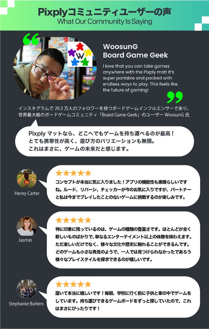 チームは数千年にわたるボードゲームの歴史を研究し、さまざまなディスプレイ素材をテストし、エンジニアと協力して、耐久性があり、柔軟で、無限に楽しい製品を構築しました。Pixplyの使命は、遊びを通じて世代や文化をつなぐことです。