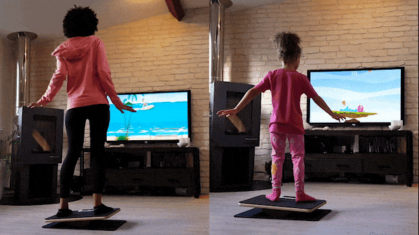 スマートフォンやタブレットでアプリサーフィンやスノーボードのアプリをクリックし、PlankPad(プランクパッド)に乗ってゲームを開始します。