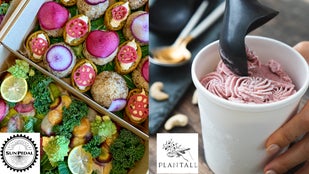 【お食事】植物性食材の彩り豪華なヴィーガン料理、PLANTALLヴィーガンアイスをご用意します。