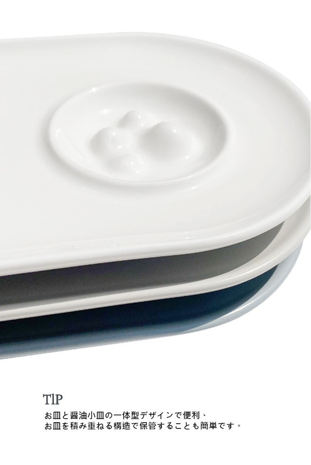 満ち潮や引き潮によって現れる多島海の様々な島の姿からのアイディアをモチーブにした製品でお皿の中にある小皿にタレをいれると多島海の島々を連想させる美しい形状が現れます。