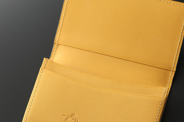 本体名刺入れスペースの底は、マチがなく見た目もスマート仕様に。しかしながら、容量アップと取り出し易さを考慮し、横マチ設計に。たっぷり容量とスマートな収納力を兼ね備えています。