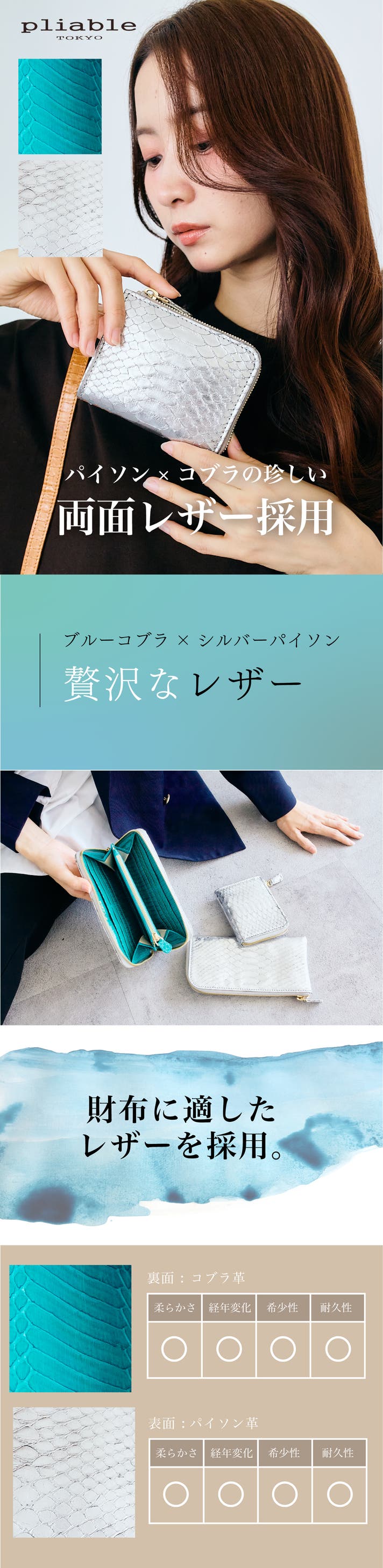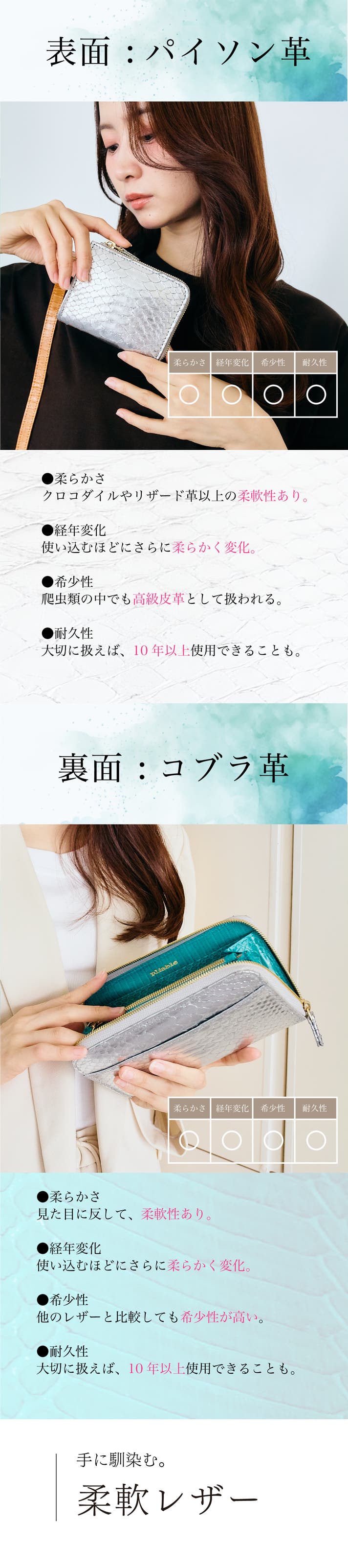 レザーと聞くと「硬い」というイメージありませんか?実はパイソンやコブラ革のレザーは柔らかいんです。