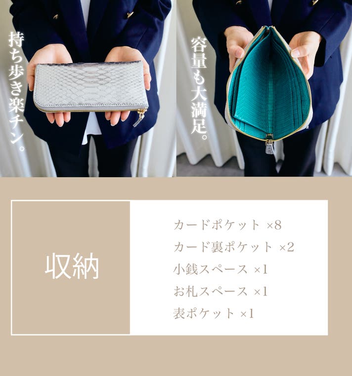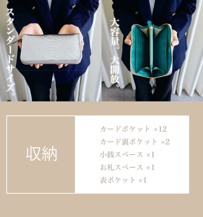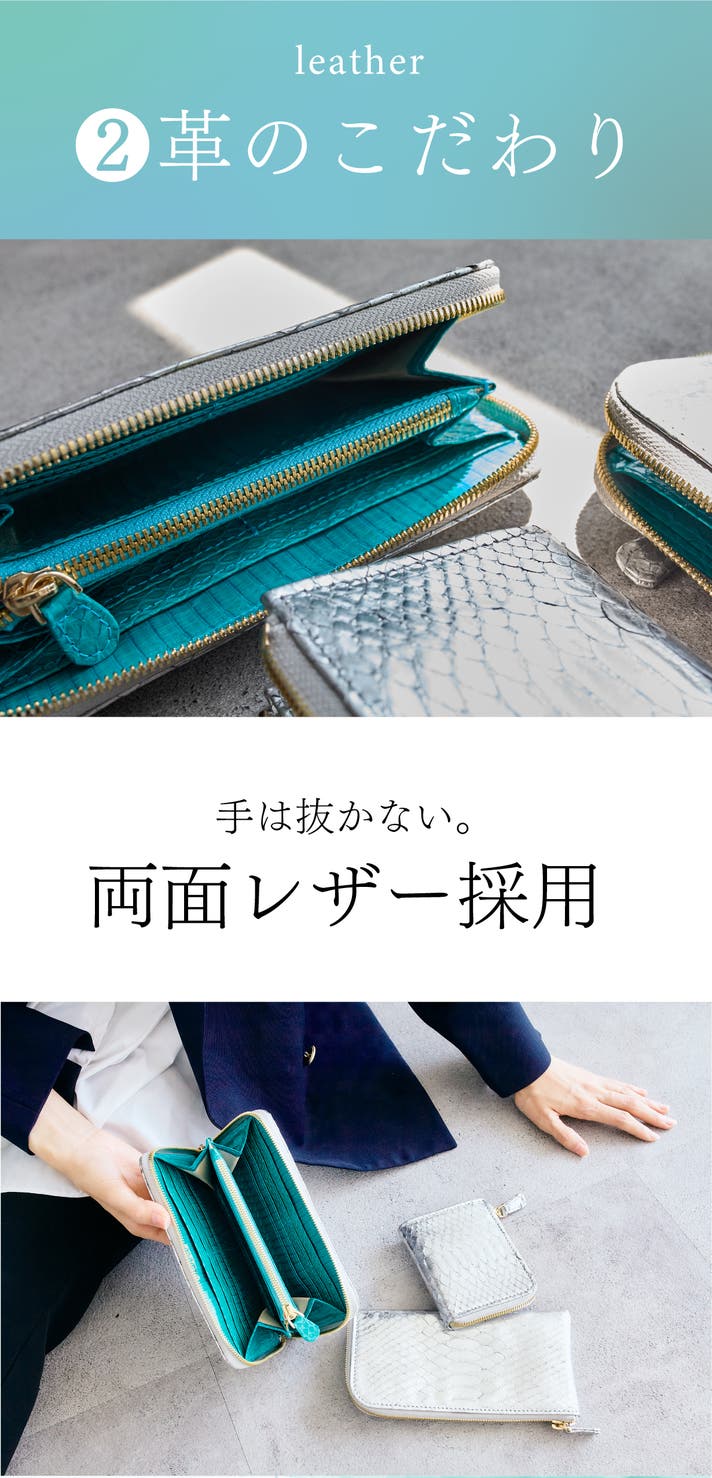- 贅沢に両面レザー。パイソンとコブラで高級感たっぷりの見栄え。