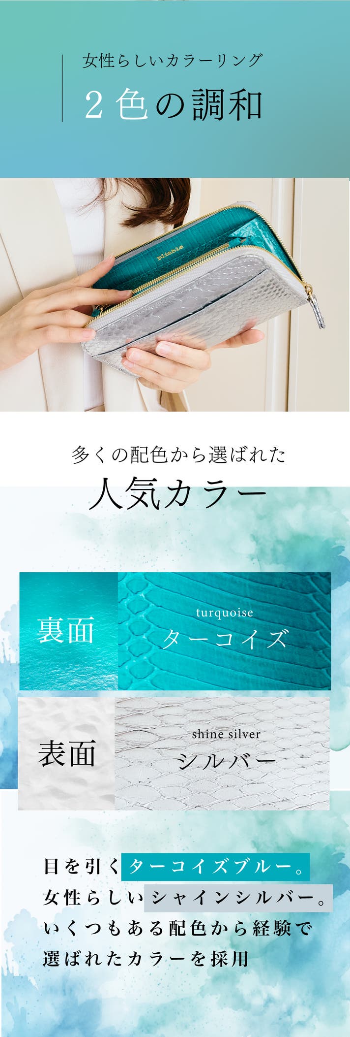 - ターコイズブルーとシルバーの経験生まれたときめくカラーリング。