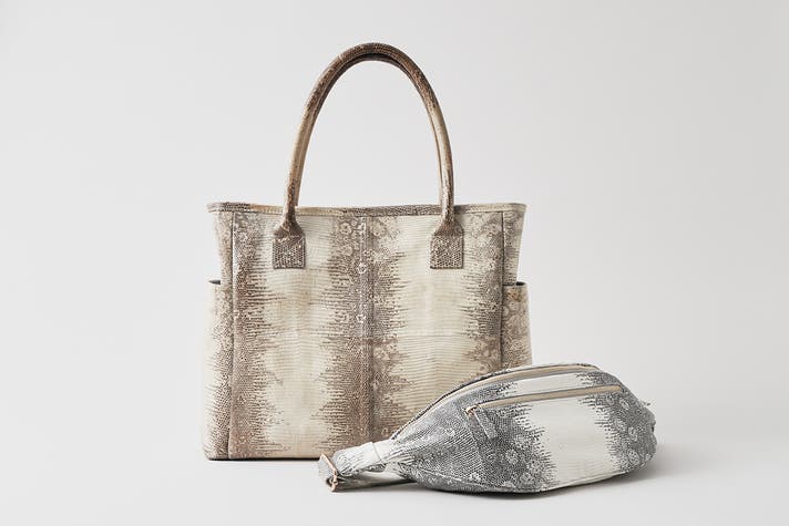- ヒマラヤリザードを原皮から選定し、素材に合わせた工程で一点ずつ仕立てています。