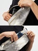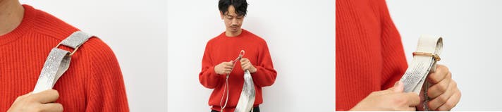 模様・厚み・艶の違いを活かすため、裁断・縫製・仕上げは一点ずつ調整。 同じ型でも、素材に応じて工程は毎回異なる。 製品は、素材との対話の中で生まれる構造物である。