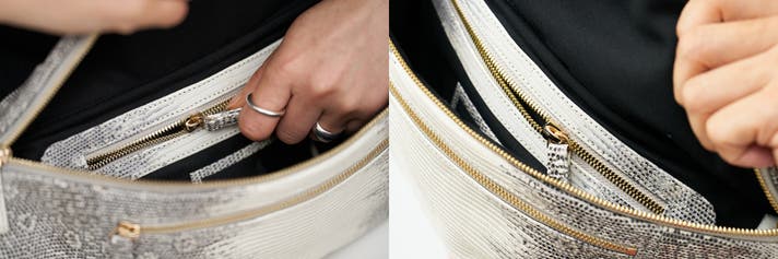 バッグの設計は、素材の個性だけでなく、使い手の生活にも応じています。 開口部の広さ、マチの深さ、ファスナーの配置––それらはすべて、収容力と操作性を両立させるための構造です。