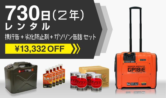 【11000円OFF】発電機2年間レンタル ガソリン缶詰 セット