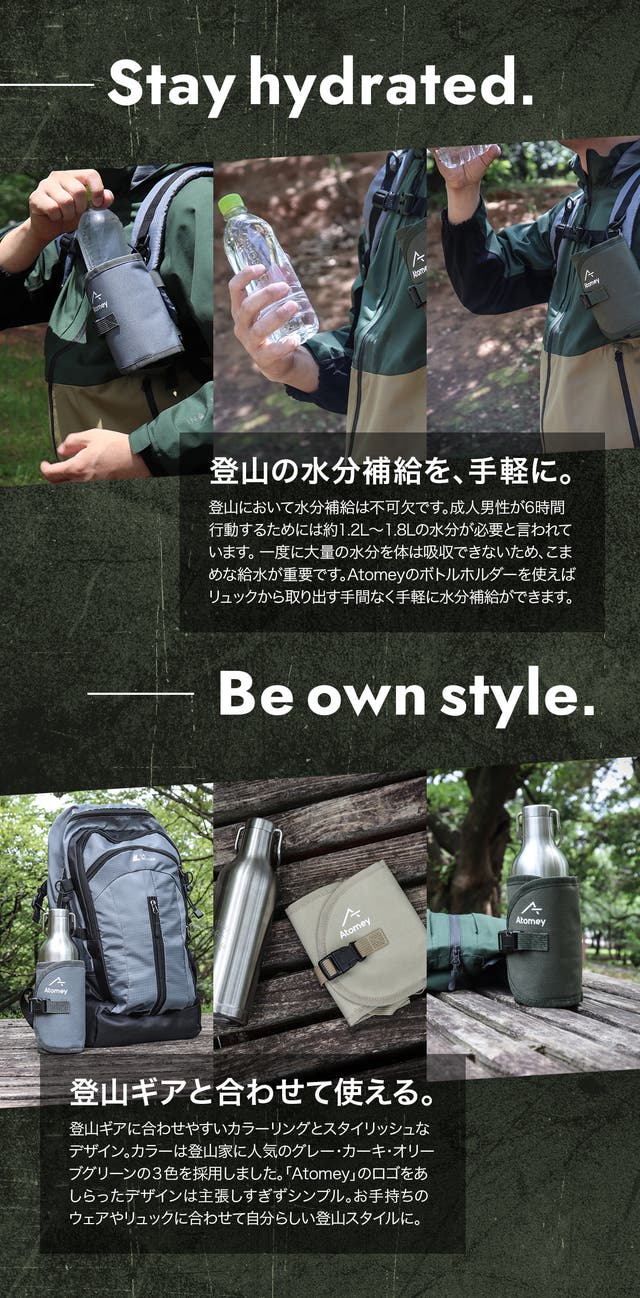 「Makuake(マクアケ)」は、実行者の想いを応援購入によって実現するアタラシイものやサービスのプラットフォームです。このページは、 プロダクトカテゴリの 「小型から大型ボトルまで持ち運べる!デザインと機能を兼ね備えた登山用ボトルホルダー」プロジェクト詳細ページです。