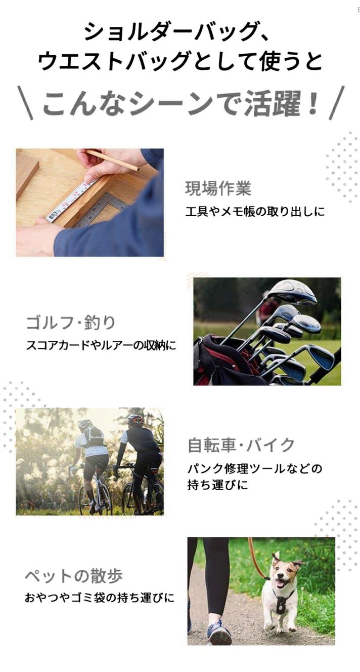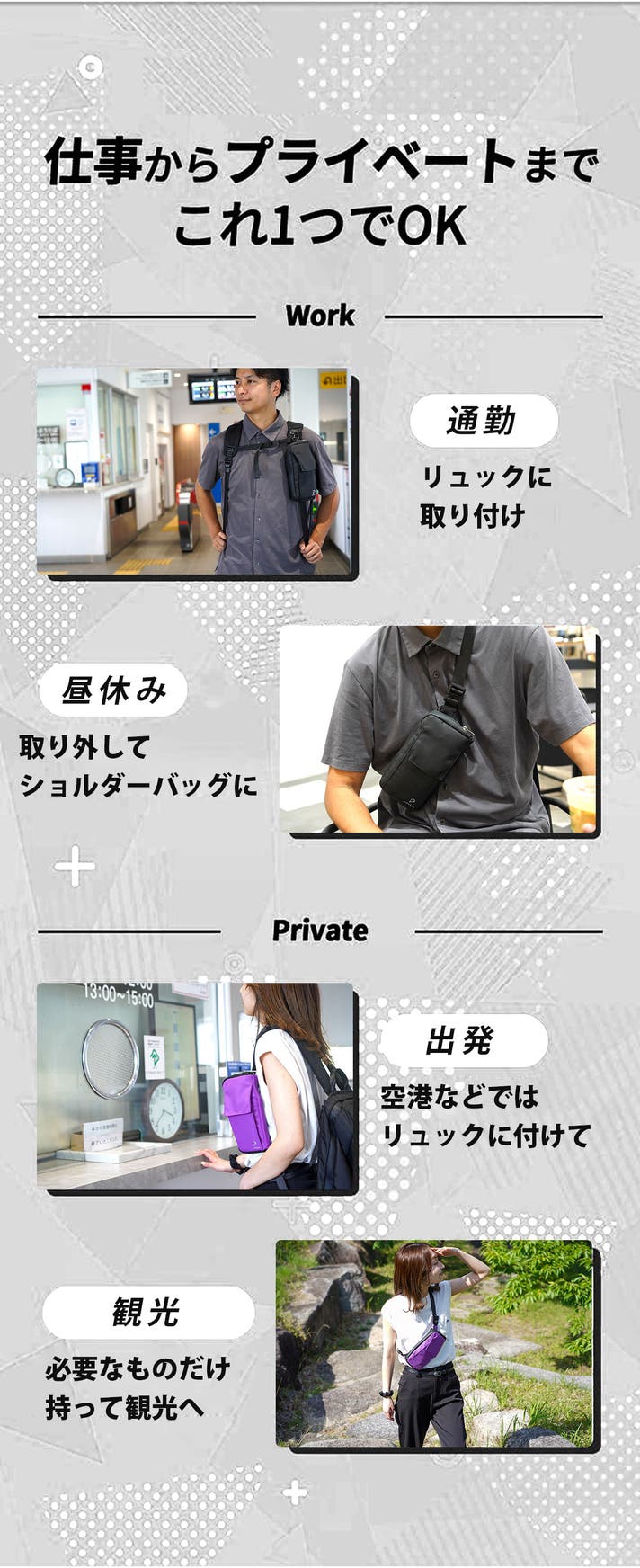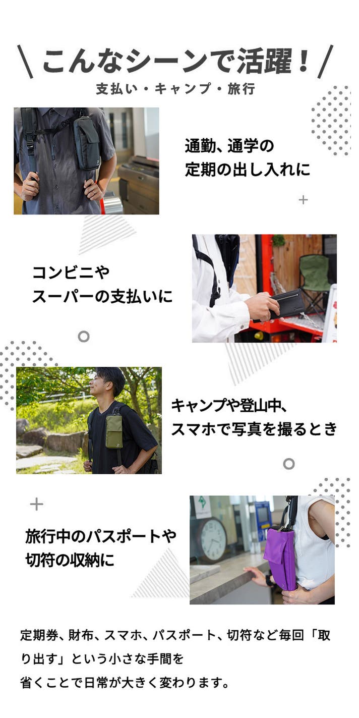 - セキュリティポーチやショルダーバッグ、ウエストポーチとしても使えて様々なシーンで大活躍!